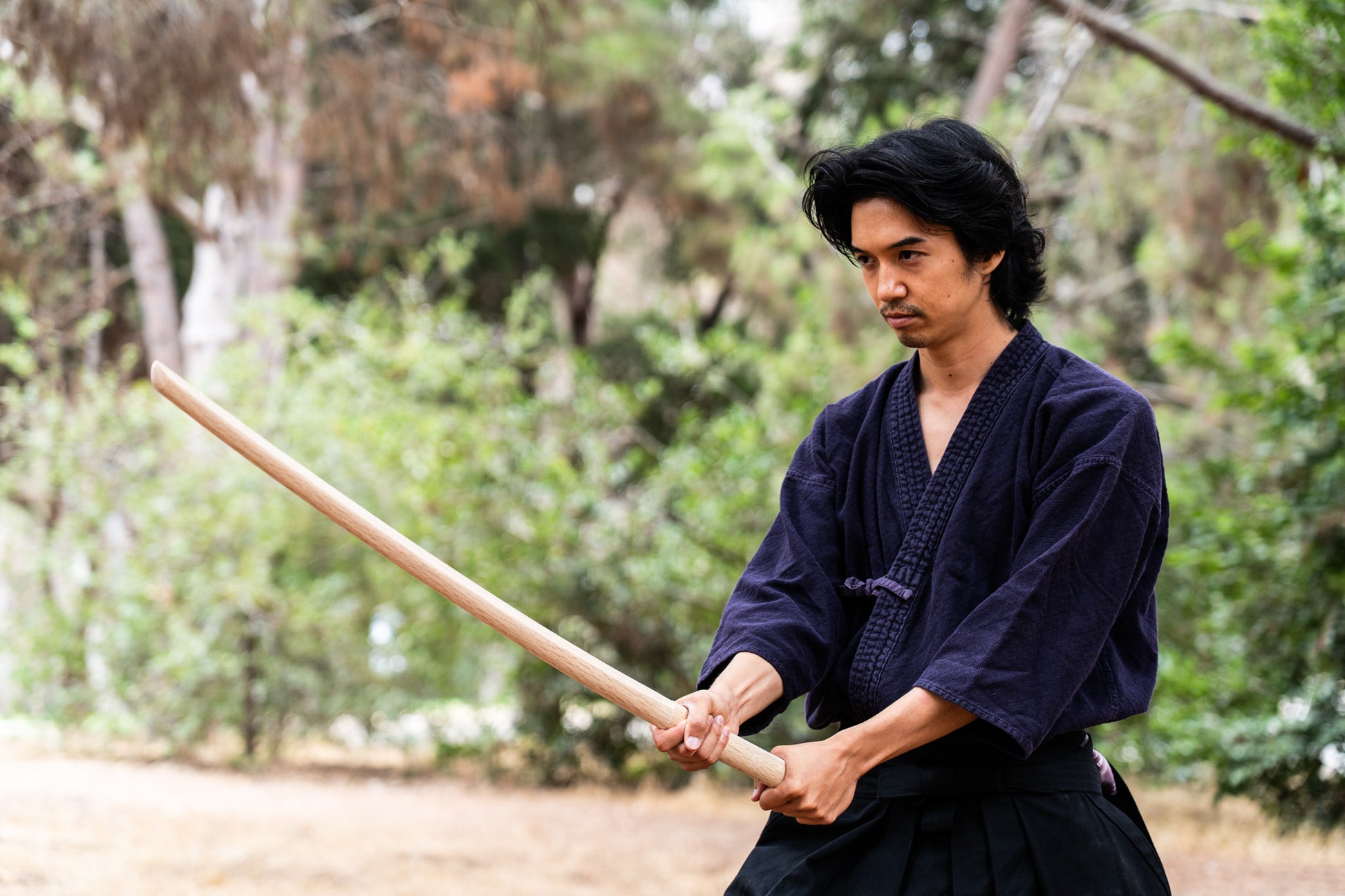 Toru: "As a practitioner of budo (martial arts) and tate (stage combat), I spent a long time searching for a bokuto that could perform well in both disciplines. It needed to be durable enough for intense strikes in budo, yet light and agile for fast choreography. I realized that in the U.S., it’s quite difficult to find one that’s both light and durable, and the few I did find were often quite expensive."
